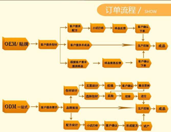 1、贴牌加工,2、来样加工,3、新产品开发,4、旧产品改造,5、来料罐装等合作方式。