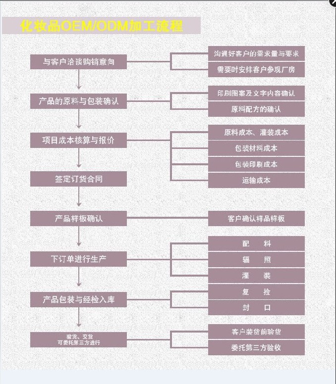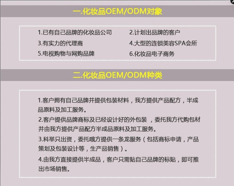 本公司坐落于中国广东省广州市,我公司是一家专业集生产研发于一体的中国化妆品OEM/ODM专业企业 自创业以来致力于“为潜力品牌植入成长基因,为优势品牌植入技术芯片".公司拥有20000平米花园式厂 区、动态10万级5000平米GMPC生产车间,6条20米流水线,自动洗瓶烘干机,各类自动膏体灌装机,自动氨基酸洁面膏加工,氨基酸洁面乳代加工,微商氨基酸面膜OEM,三合一面膜代加工厂,气垫BB霜OEM,微商CC霜OEM,CC霜代加工厂,广州护肤品代加工厂,修复蚕丝面膜贴牌。面贴灌装机,自动软管封尾灌装机,烟包机、1000 平米带万级生物检验室的检验中心。司 无论在产 品研发,生产管理,质量管控,产品策划,客户服务等资源整合平台上也非常出色,为客户提供完善 的管理体系和专业的人才服务。